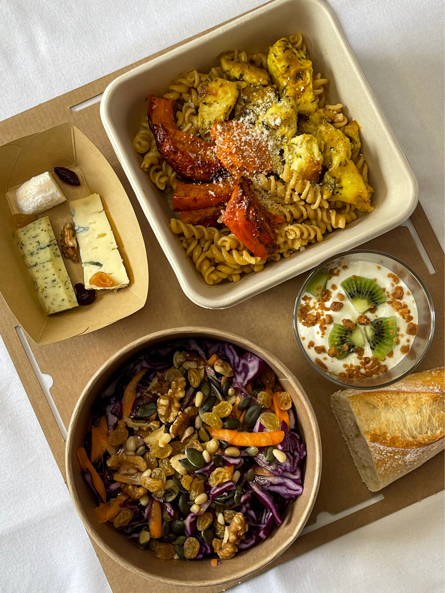 Plateaux individuels, idéal pour les réunions plus formelles, chaque personne dispose de son plateau comprenant : entrée, plat, fromage, dessert, couverts, gobelet, serviette.